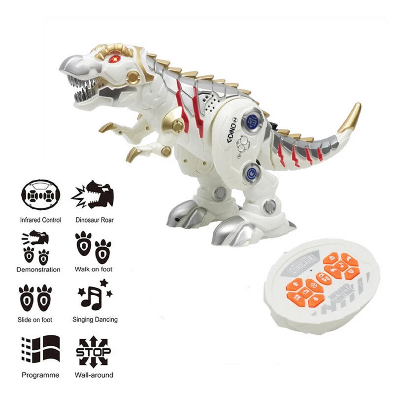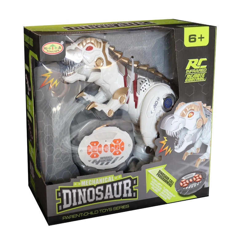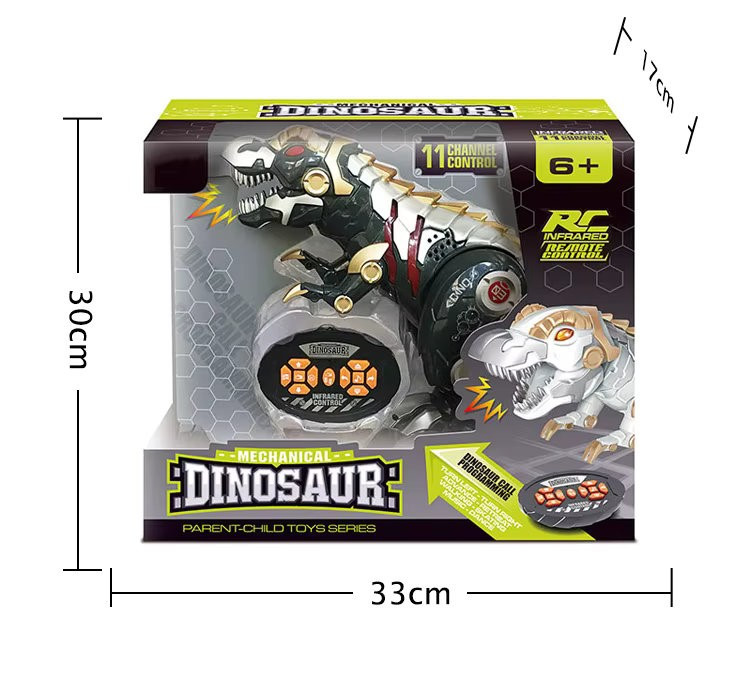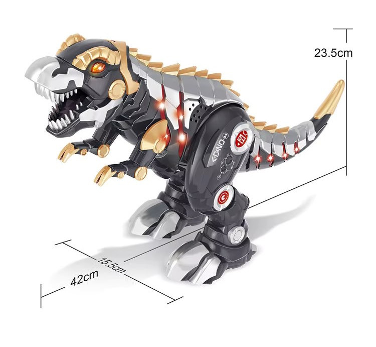 Динозавр на батарейках, ходит стреляет с автомата пульками, свет, звук, брелок сигнализации 20х15х27