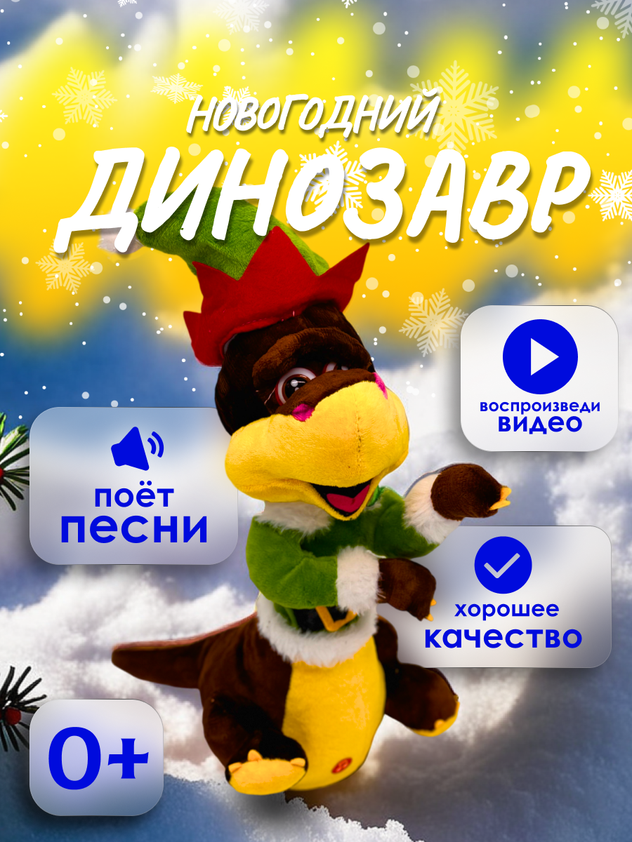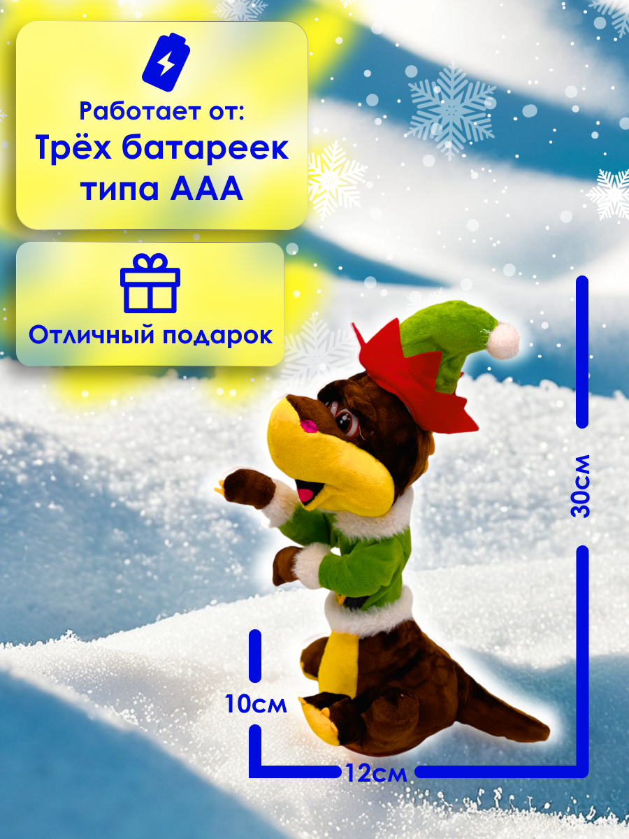 Динозаврик музыкальный на батарейках 37*15CM, поет 8 песен не детские
