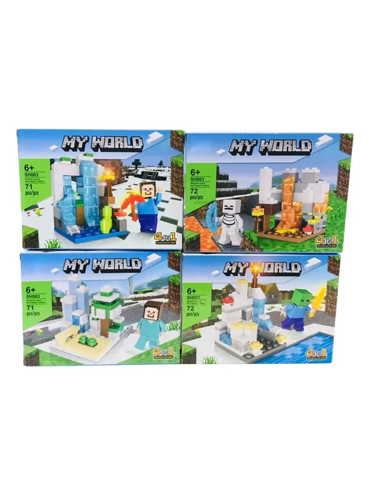 Конструктор 12001A Майнкрафт "Пещеры в 4 биомах" светящийся 184-187 дет 4 шт в д/б