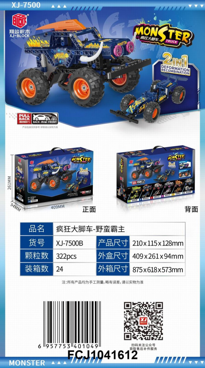 Конструктор BBlock XJ-7500E "Монстр Трак" 2в1 322дет. 40.9x26.1x9.4