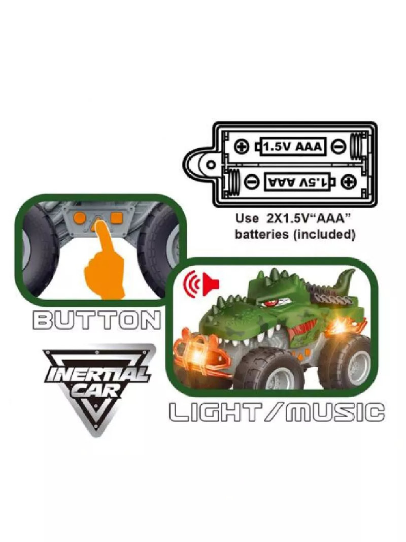 Машинка Динозавр со световыми и звуковыми эффектами на батарейках, 30.5*18.5*16.7