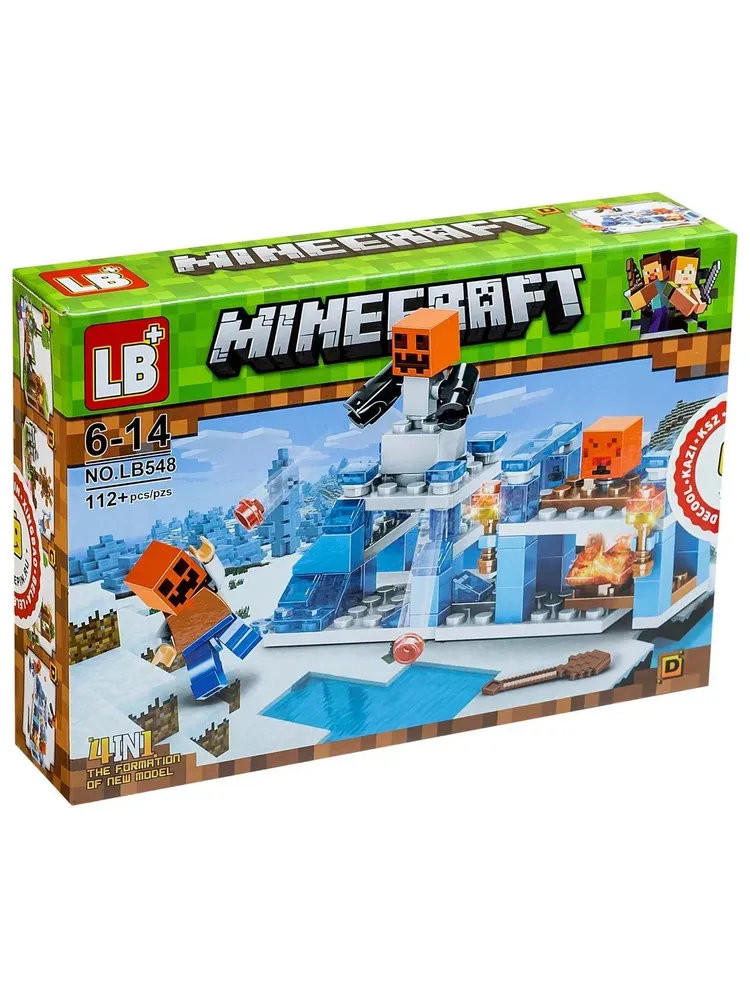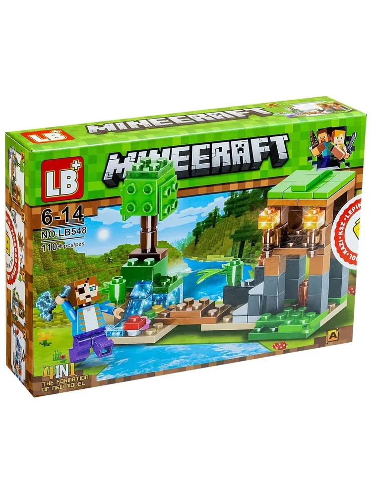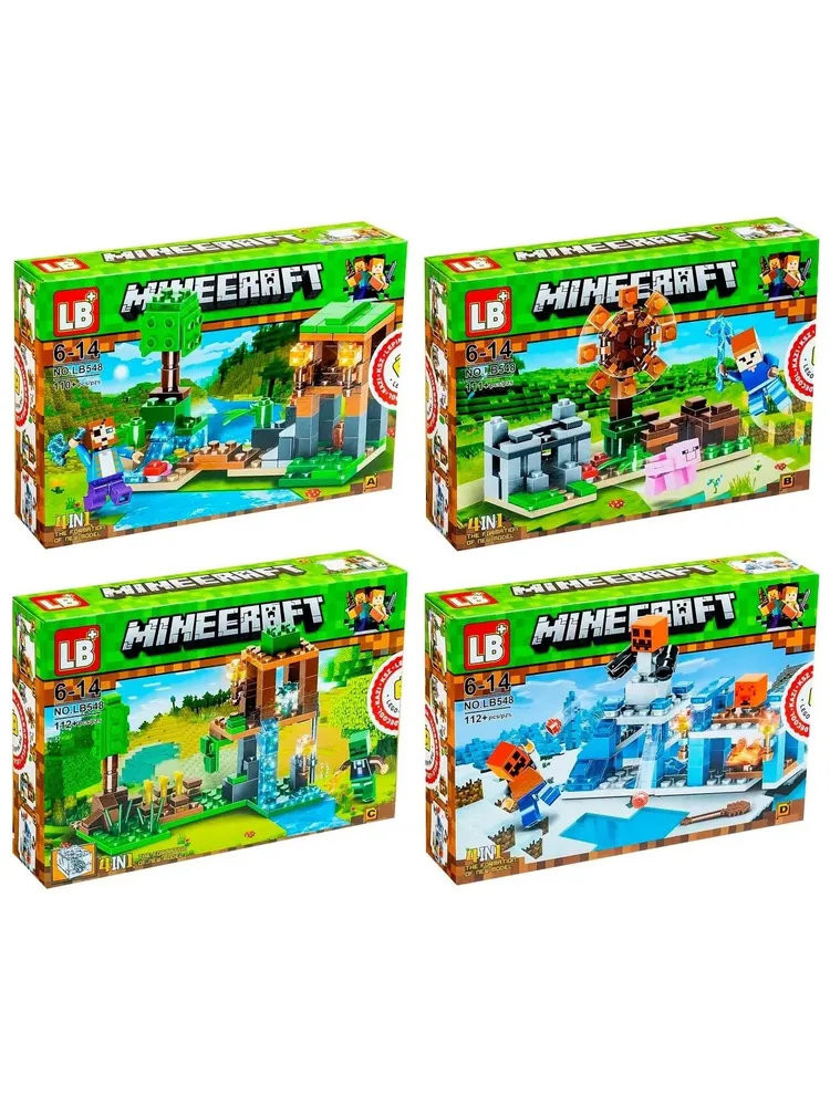 Конструктор 12002A Майнкрафт "Лавовая пещера, Лесная пещера, Каменная пещера, Эндермир" светящийся 174-185 дет. 4 шт в д/б