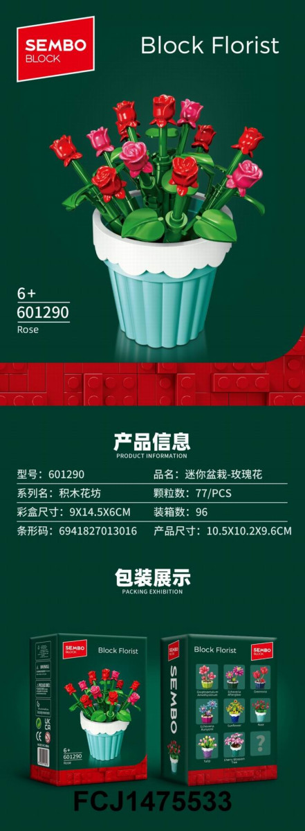 Конструктор SEMBO 601296 "Пионовидная хризантема" 254 дет. 8X20X6