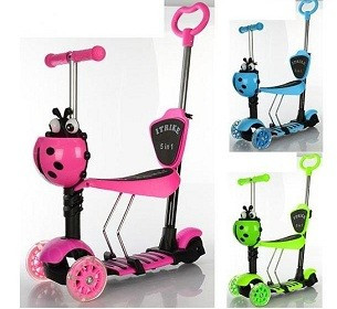 Самокат детский Макси Принт 3х колесный, Складной, светящиеся колеса 120мм, цвета в ассортименте (10шт.).